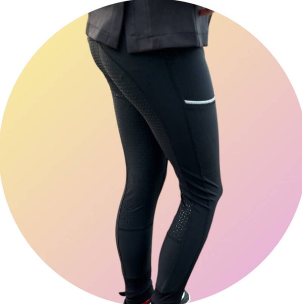 Entdecke die neue schwarze Kinder Reitleggings – die perfekte Kombination aus Stil, Komfort und Funktionalität für dich als junge Reiterin oder Reiter! Hergestellt aus hochwertigem, atmungsaktivem Material bieten dir diese Leggings optimalen Tragekomfort während des gesamten Reitens.