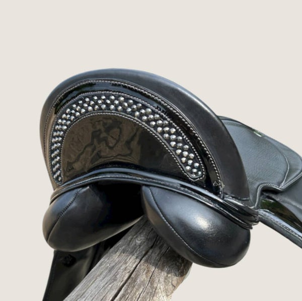Erhältlich in den Größen von 14“ bis 18“ in klassischem Schwarz, fügt sich dieser Sattel nahtlos in jede Reitausstattung ein. Die feinen Swarovski-Steine in Schwarz setzen einen glamourösen Akzent und verleihen dem Sattel eine besondere Note, die sowohl im Training als auch bei Wettkämpfen begeistert.